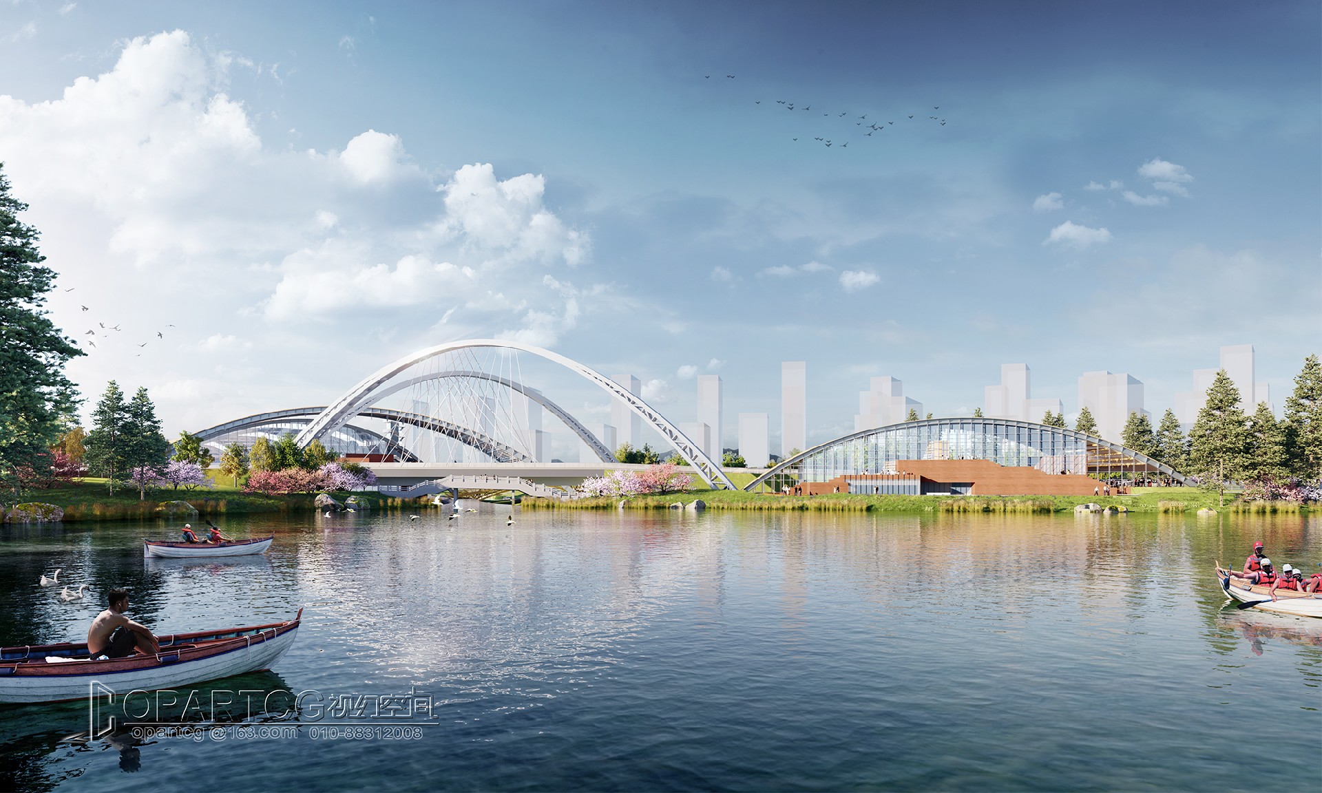 The main hall in the north area of the popular science center is located in the southeast of Shouyuan road and Dongdi Road, facing the water on three sides, and the arched roof crosses Shouyuan lake to the South; The South sub Hall of the popular science center is located in the northwest of Dongdi road and the first planning branch road; The outdoor exhibition shed is located in the east of the main hall; One management room and public toilet are located in the south of the plot, and one public toilet is located in the east of the plot.